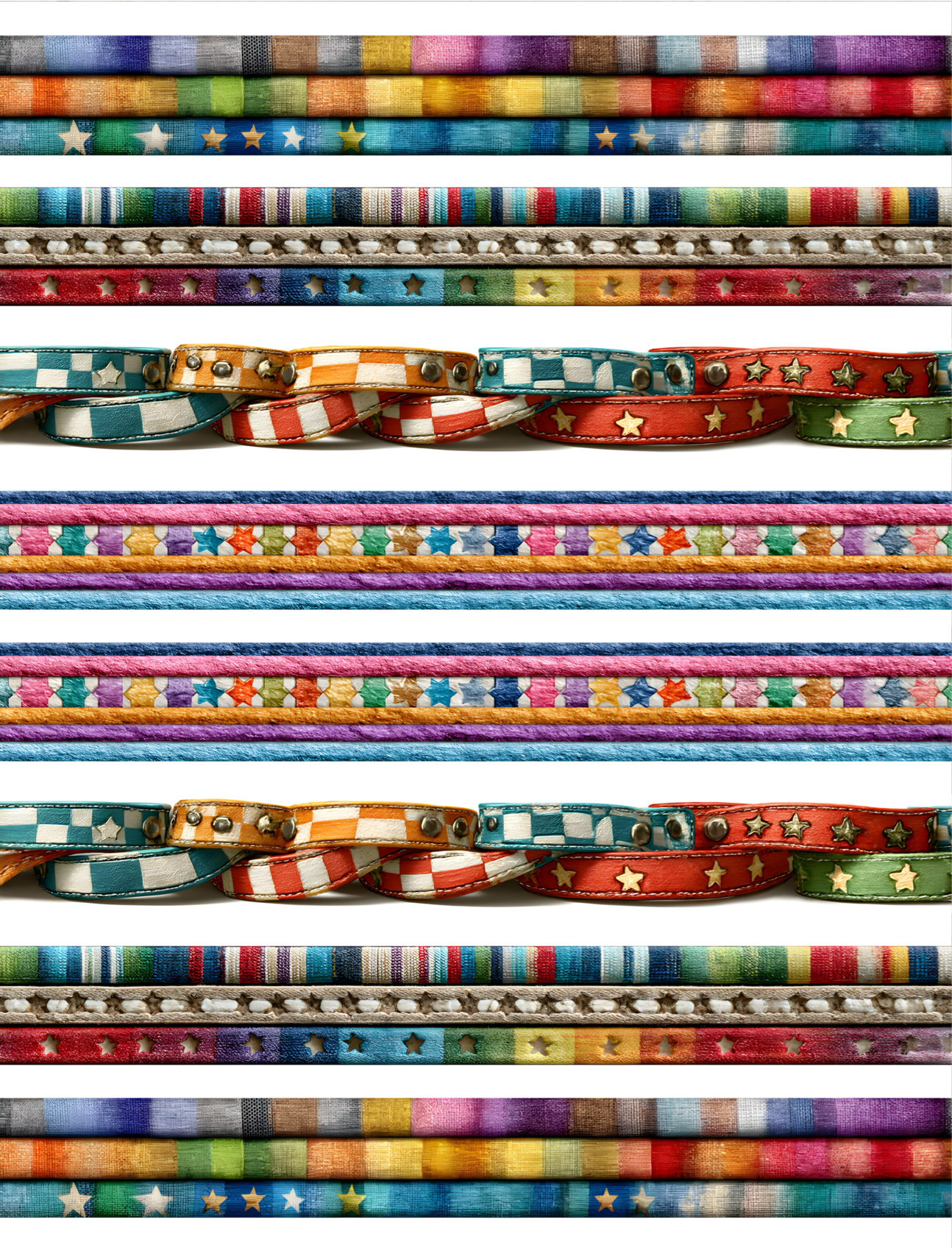 Washi Tape Strips: Faux-textured strips of zippers, denim seams, and shoelaces to decorate your borders.
