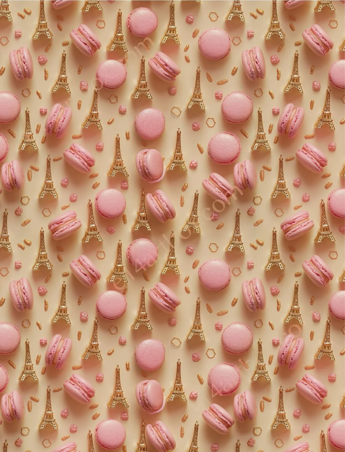 Elegant Seamless Patterns: Beautifully designed repeating patterns featuring macarons, florals, and Parisian icons - perfect for creating your own scrapbook paper, lining envelopes, or adding decorative layers to your journal.