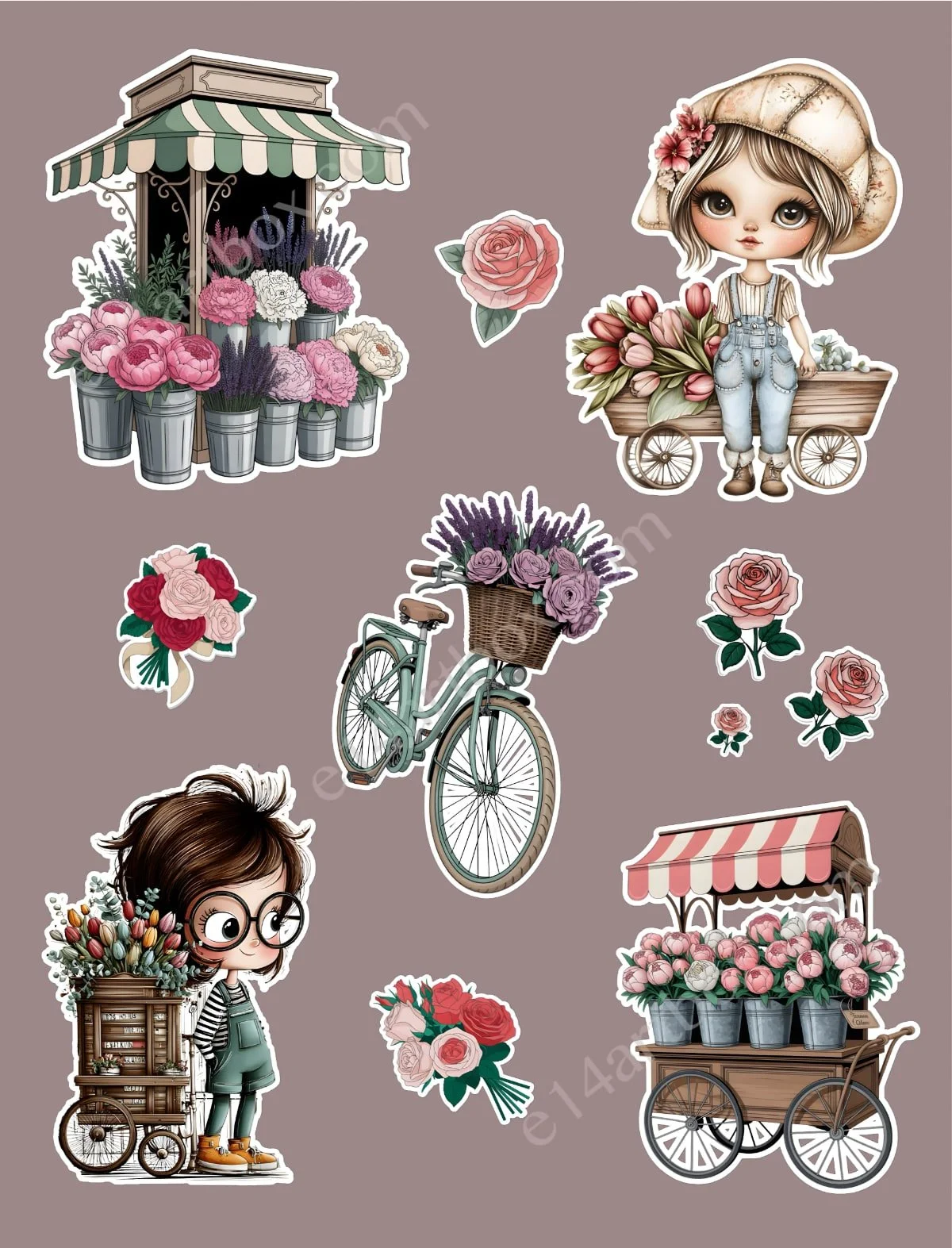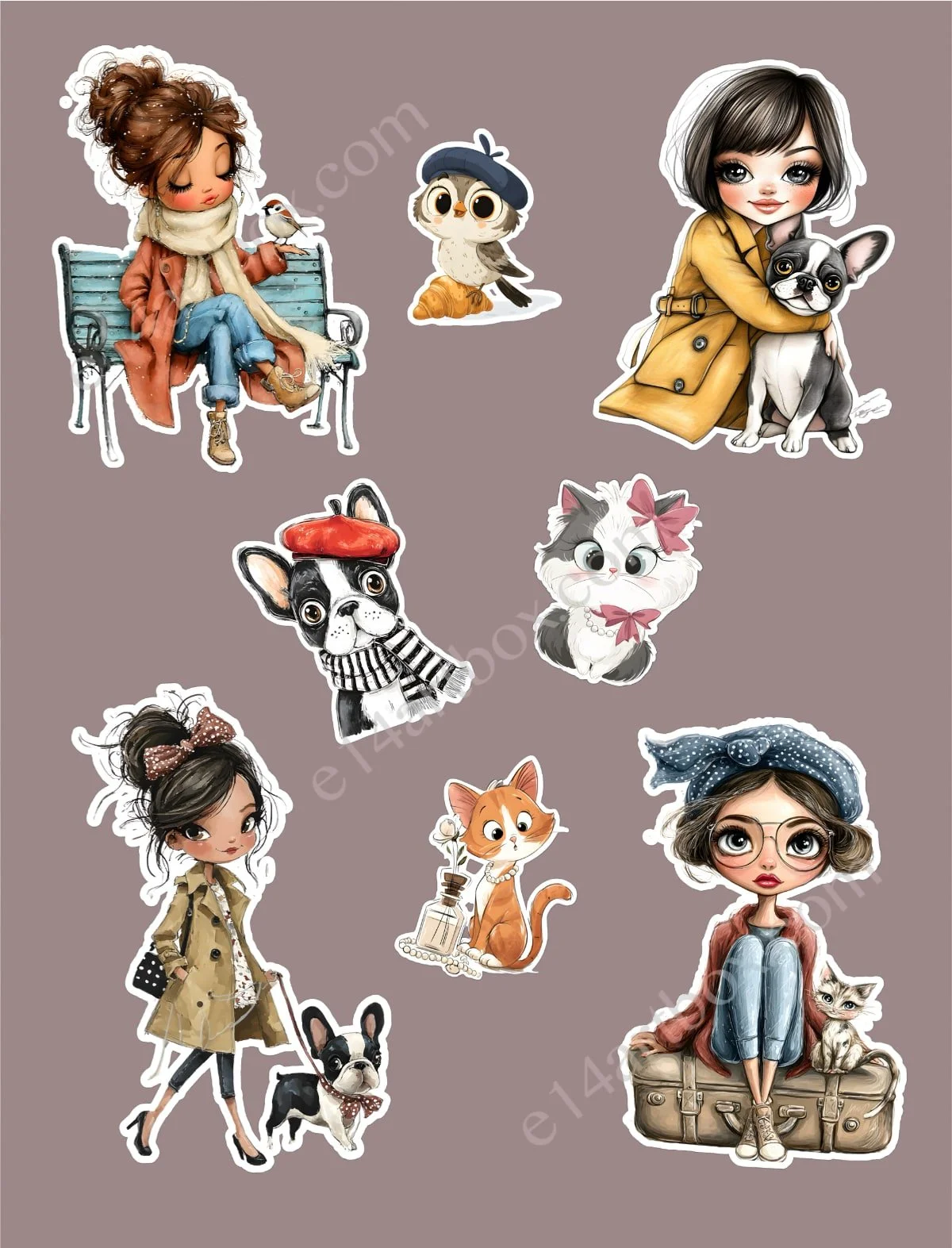 Whimsical Companions: Adorable beret-wearing sparrows, fluffy white poodles with silk bows, and "petit" pets that bring a smile to every layout.