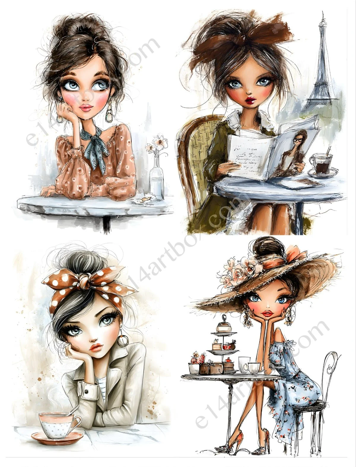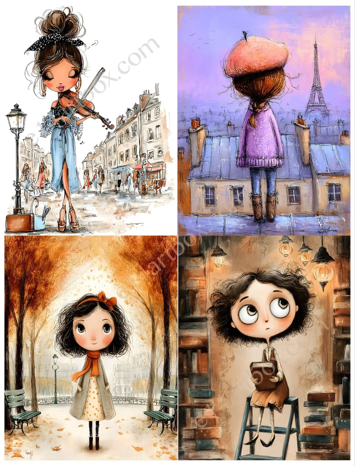 Mademoiselle in Paris is more than just a book; it is a high-end creative toolkit designed for junk journalers, scrapbookers, and paper crafters who want to add a touch of French chic and whimsical charm to their projects. Featuring a unique blend of high-fashion character design, painterly mixed-media landscapes, and iconic Parisian trinkets, this kit provides a complete "boutique" experience on every page.