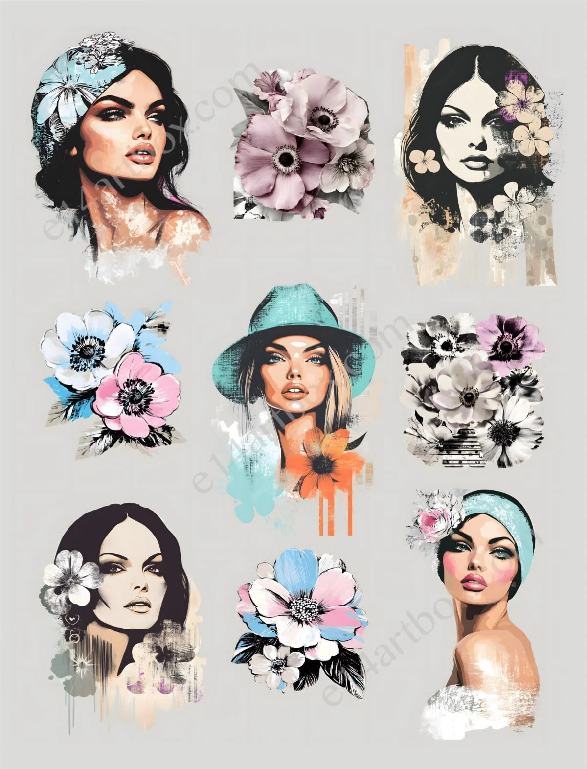 Curated Ephemera Pages: Collections of smaller, fussy-cut-friendly images, including faces, flowers, and butterflies, ready for your projects.